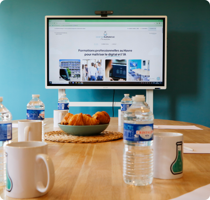 Besoin d’un espace pro pour réunir ton équipe, organiser une présentation client ou brainstormer en petit comité ? Chez Cocktail Numérique, notre salle de réunion au cœur du Havre allie confort, équipements modernes et ambiance conviviale. Si tu n’es pas membre de notre coworking et que tu as besoin d’une salle de réunion de manière ponctuelle, découvre nos différentes formules et viens profiter d’un cadre inspirant !