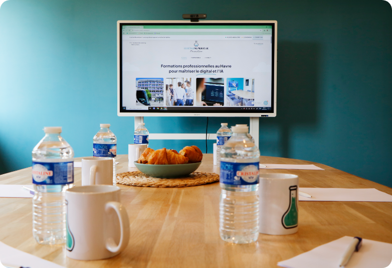 Besoin d’un espace pro pour réunir ton équipe, organiser une présentation client ou brainstormer en petit comité ? Chez Cocktail Numérique, notre salle de réunion au cœur du Havre allie confort, équipements modernes et ambiance conviviale. Si tu n’es pas membre de notre coworking et que tu as besoin d’une salle de réunion de manière ponctuelle, découvre nos différentes formules et viens profiter d’un cadre inspirant !